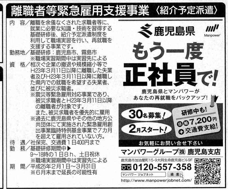 ところで今朝の新聞に先の緊急雇用の記事が有ったのをみたかな?
