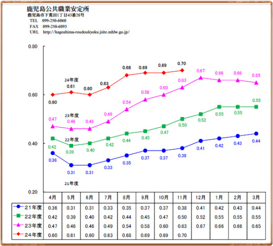 して、真面目な話というのは、先日1月4日に鹿児島労働局が発表した統計